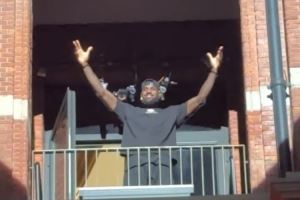 在上海站耐克官方举行的“Forever King”活动开始前,詹姆斯在4楼的阳台上张开双臂向全场球迷问好。