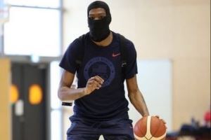 你热不热?😂杜兰特今日戴着忍者头套训练