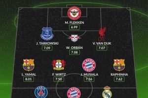 体育资讯7月29日讯 whoscored统计了24-25赛季的五大联赛赛季评分最佳阵容,巴萨、拜仁各2将入围。