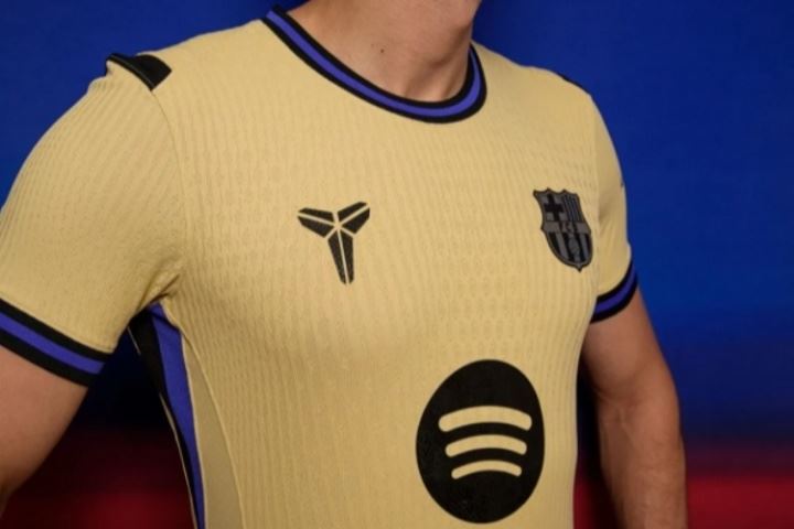 巴塞罗那足球俱乐部与耐克共同缔造球衣设计史上的革命性时刻——2025/26赛季第二客场战袍将首次以科比·布莱恩特个人品牌标志“Kobe Sheath”(剑鞘徽章)替代传统的耐克勾形标识。这次破天荒的合作源于NBA传奇与巴萨在追求卓越体育精神上的高度共鸣,科比永不言弃的“曼巴精神”与巴萨"不只是一家俱乐部"的核心理念完美交融。