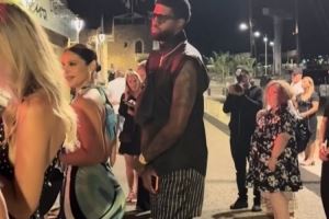 乔治戴着护膝在夜店门口排队 美媒调侃:他也太不认真了😂