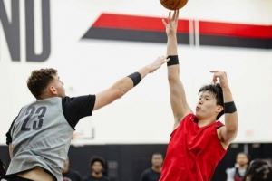 持续进步!开拓者训练营第三日返图:杨瀚森对位克林根