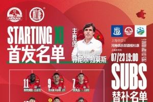 足协杯第5轮上海申花vs河南队首发及替补队员名单