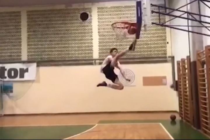 早在2017年,14岁的塞斯科就展现出了惊人的运动天赋。在一段视频中,塞斯科高高跃起,用脚踢出了位于篮筐边缘的篮球,而标准的篮筐高度为3.05米。